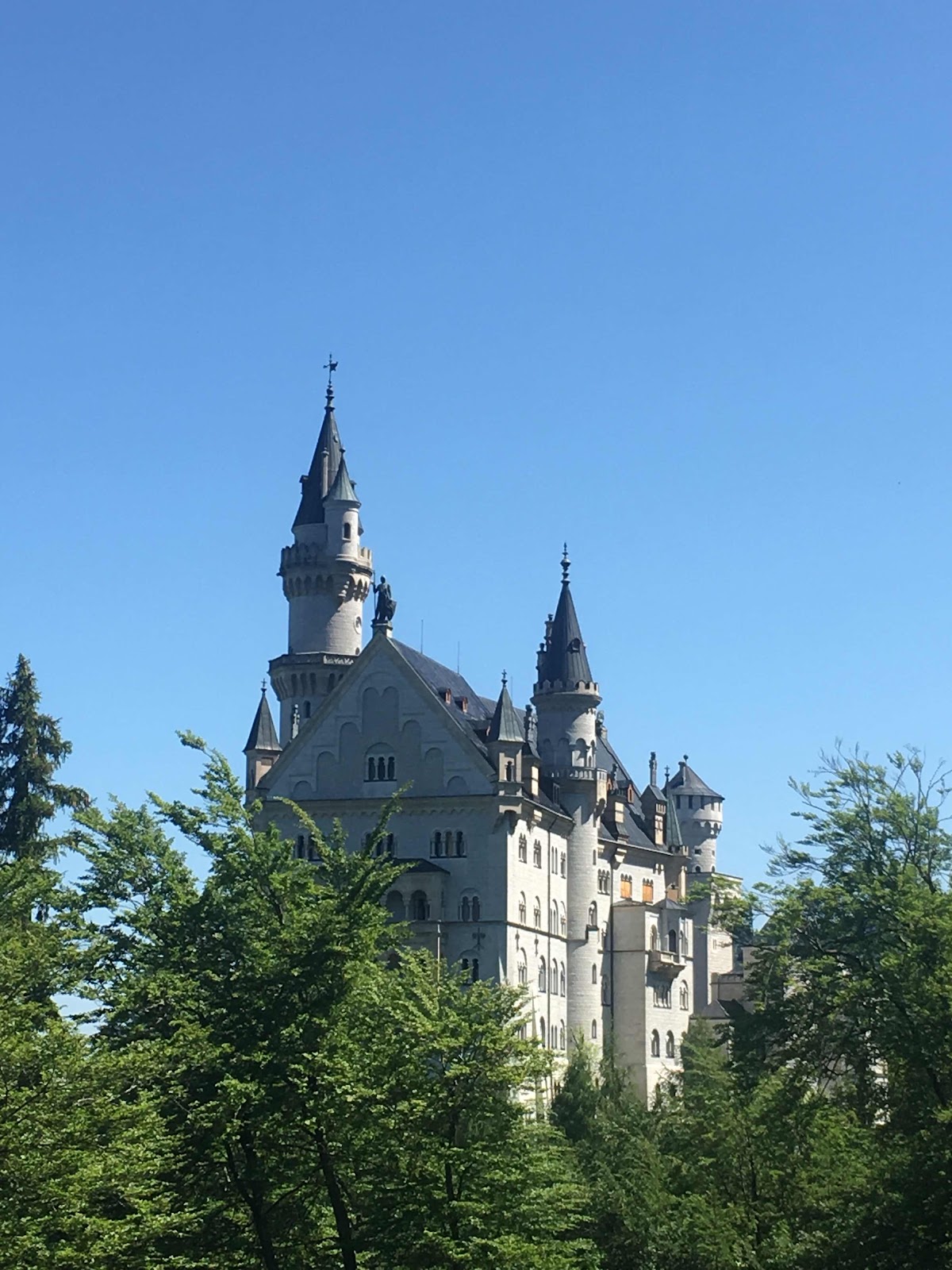 To get to our next destination, Neuschwanstein, we paid for the shuttle bus to take us up the hill. We walked back down. I recommend this option unless you’re in reasonably good condition. Ludwig II was of particular focus as he is the king who was responsible for the construction of the castle 150 years ago. He died young (age 41) under mysterious circumstances before he could complete this castle. He had a reputation of being a little eccentric if not a little crazy and has earned nicknames like “the Mad King”, “the Fairytale King”, and “the Swan King.” Schwan means swan in German. Neuschwanstein was basically built to be his playground. He loved myths and legends and had murals of his favorites all over the walls. Many of the rooms were designed for him to play the central role in the stories that interested him the most. Here are some of the pictures from the exterior which, despite my best efforts, do not capture the beauty of this amazing place.